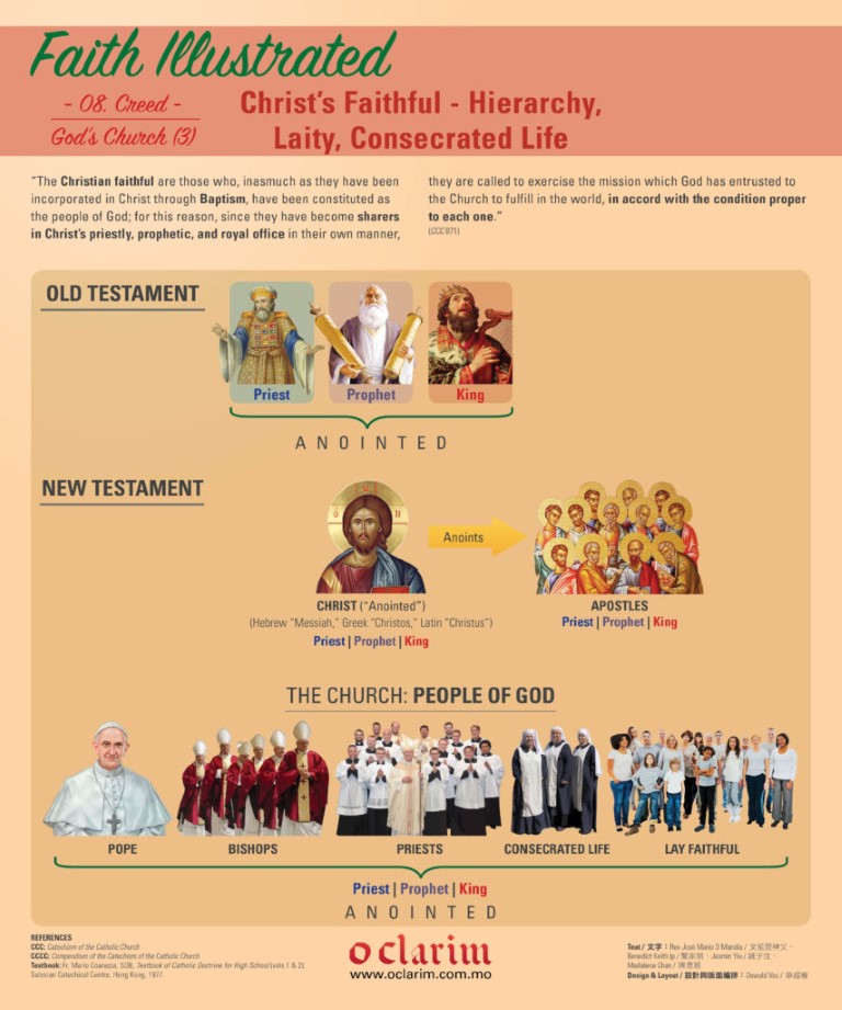 FAITH ILLUSTRATED – Creed 09: God’s Church (3) March 2, 2019March 21, 2019 adminAll Categories, Infographics Christ’s Faithful – Hierarchy, Laity, Consecrated Life Follow