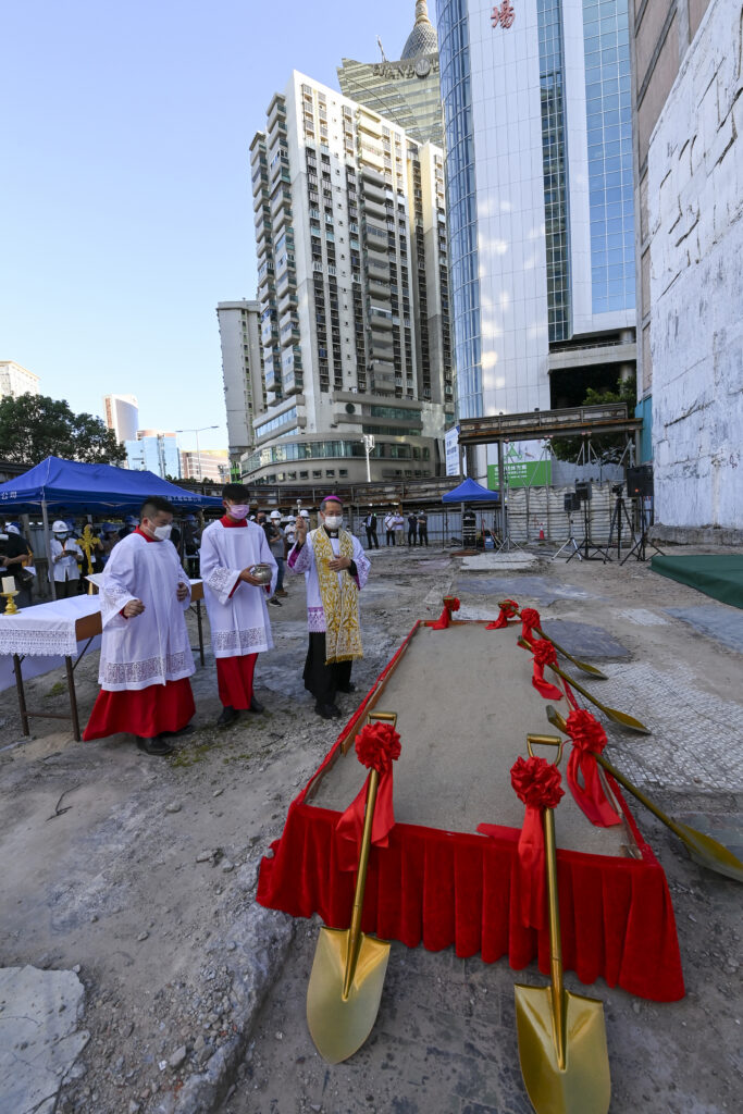 O bispo D. Stephen Lee presidiu, na quarta-feira, ao lançamento da “primeira pedra” do novo Centro Católico de Macau. A obra deverá estar concluída em 2024.