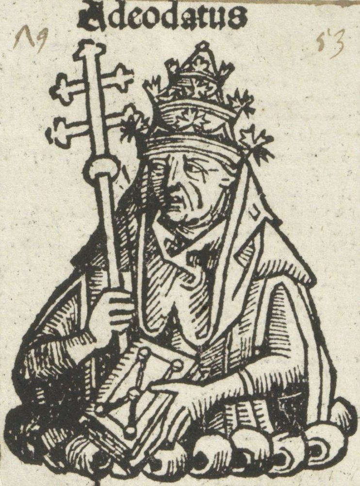 “Houve um intervalo de 138 dias entre a morte de Adeodato e a consagração de Dono, seu sucessor, um intervalo marcado por um tempo extremamente adverso. Os relâmpagos matavam homens e animais, e as tempestades eram tão violentas que as pessoas rezavam em litanias diárias para que o trabalho agrícola necessário pudesse continuar” (Brusher & Borden, “Popes through the Ages”, pág. 156).