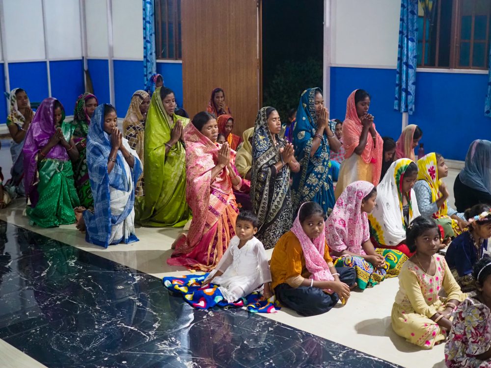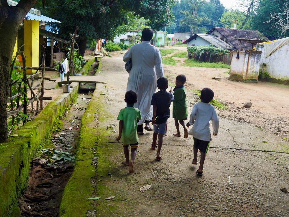 從賈格達爾普爾的小機場到馬竇神父村莊的旅程令人難忘。牛群悠然漫步於道路之間,不受干擾,自若自在。暮色降臨之際,我們的司機穿梭於人群之間,閃避著橫衝直撞的摩托車手與貨車刺眼的車頭燈。最後一段路泥濘不堪且未鋪設路面,連日雨水更令狀況雪上加霜。歷經二十餘小時從香港啟程的跋涉,我們抵達簡樸的教堂時,馬竇神父已攜同孩童、青年與數名成人等候多時。眾人以花環與歡欣歌聲迎接我們。