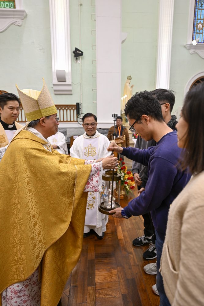聖體聖事結束後,李主教燃點了九盞油燈,並將它們交給教區各堂區的代表,請他們將「光」帶回各自的堂區,象徵基督之光在教區內持續擴散。「光」的傳遞反映了澳門教會的使命與事工,彰顯了天主教團體的重要性,以及信徒對新一代的深遠影響。